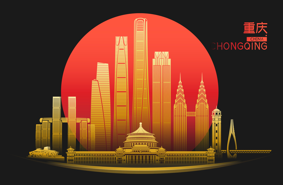 重庆天际线矢量插画