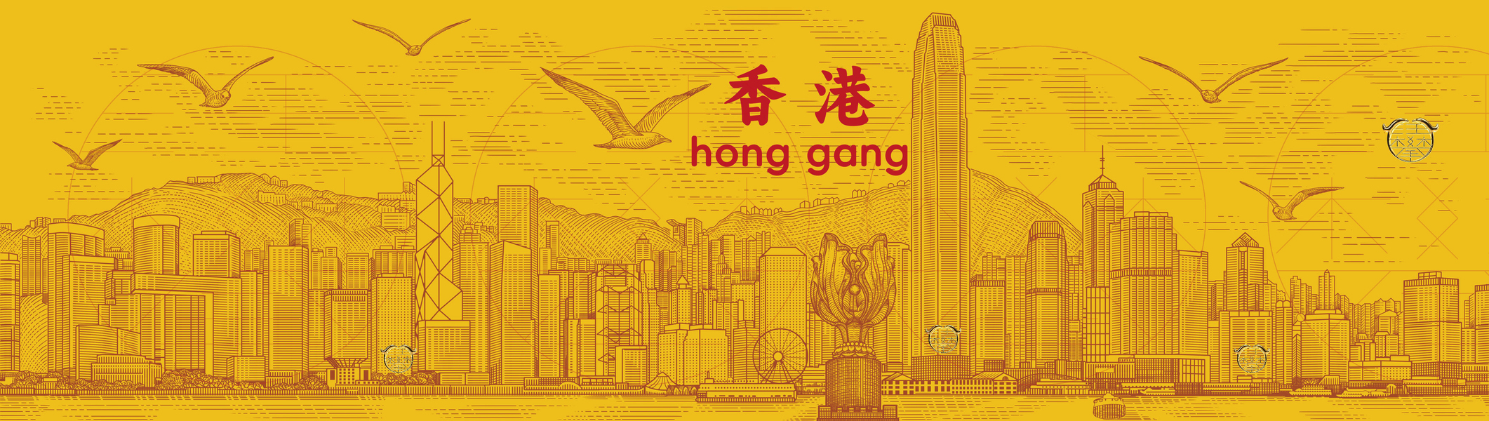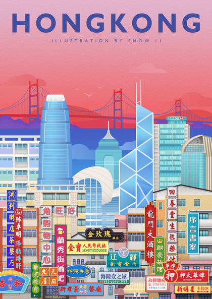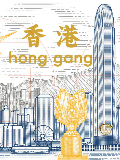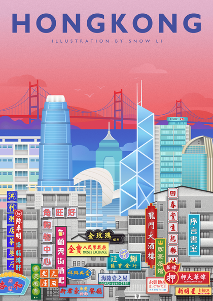 香港城市建筑版画插画/城市文创插画设计