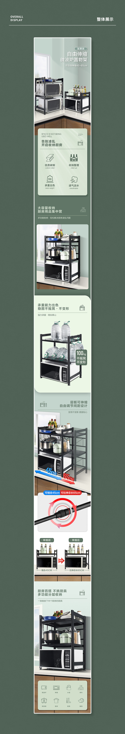 加厚伸缩微波炉架详情页
