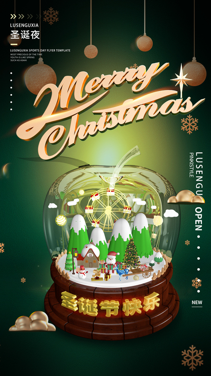 山茶涧-圣诞主题活动插画视觉海报与物料设计