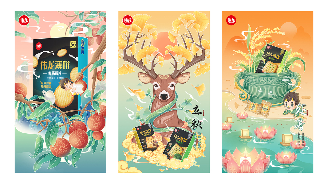 华润2022年24节气插画:寒露 霜降 立冬 小雪
