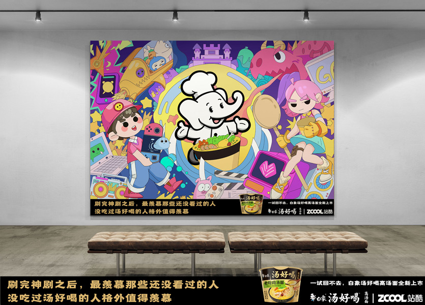 白象汤好喝创意插画海报---羡慕那些没喝过的人