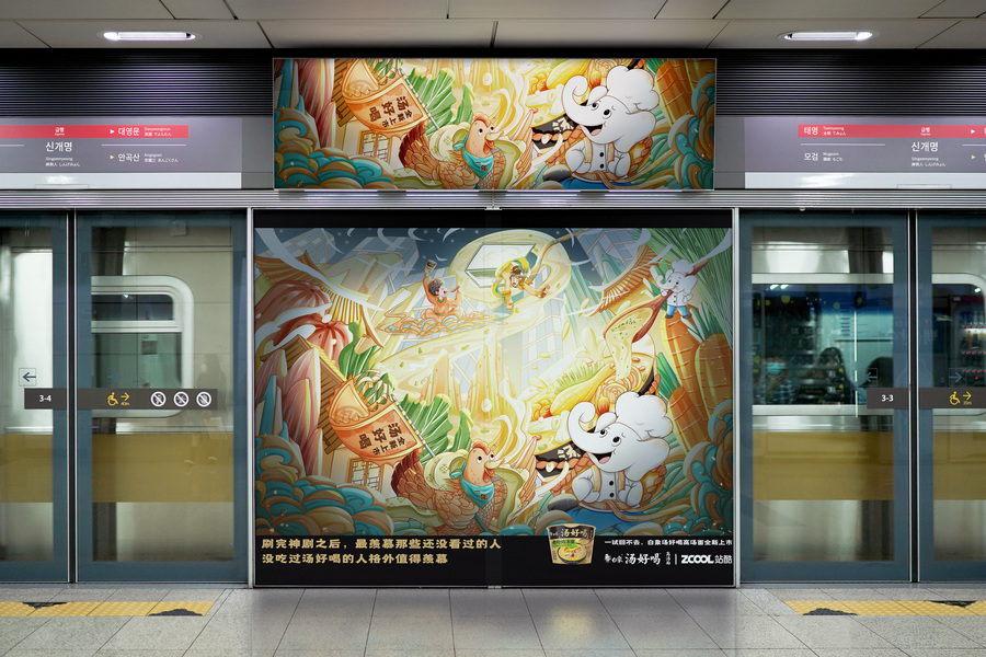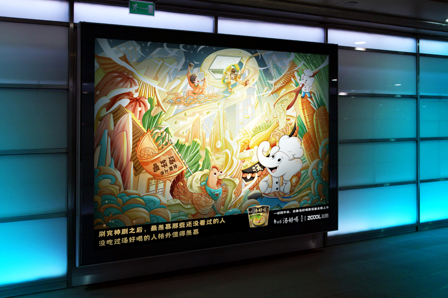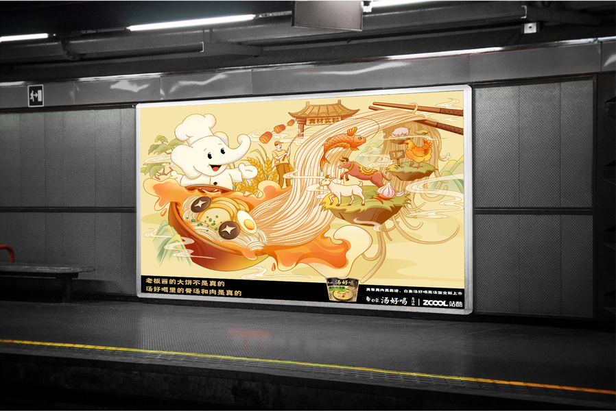白象汤好喝创意插画海报---羡慕那些没喝过的人
