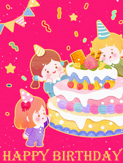 儿童生日场景插画