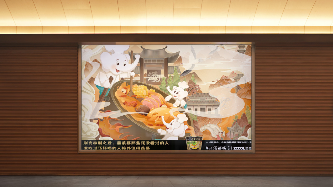 白象汤好喝创意插画海报---羡慕那些没喝过的人