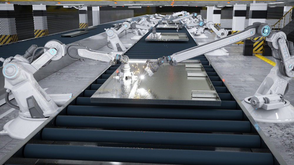 新能源汽车电池工业生产线流水线三维动画3D视频建模型