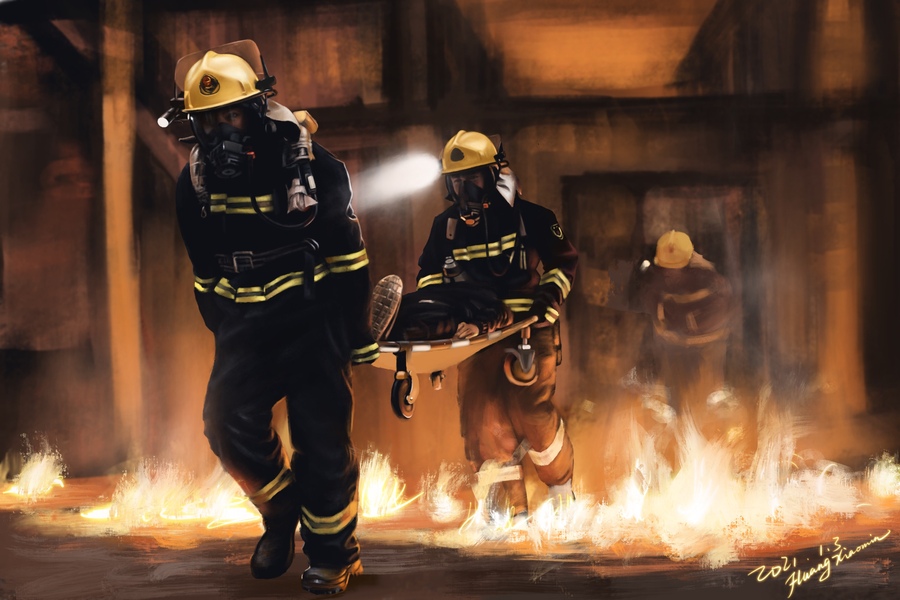 消防员令人破防的瞬间【那些用画笔定格的难忘瞬间 】