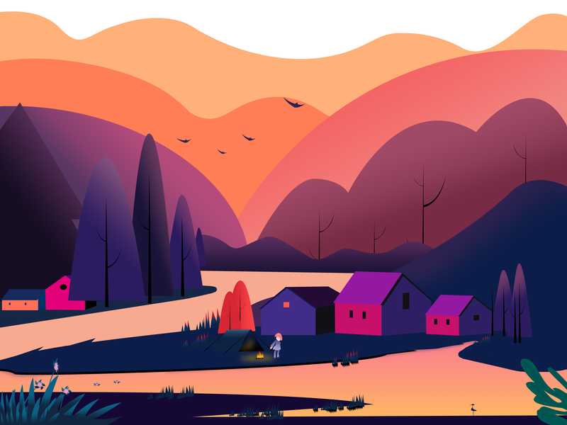 扁平风景插画