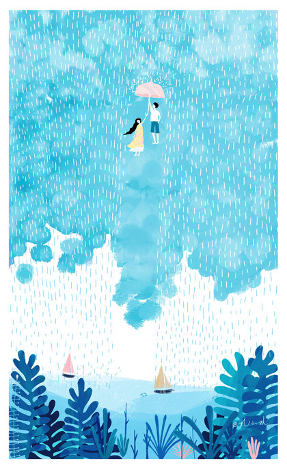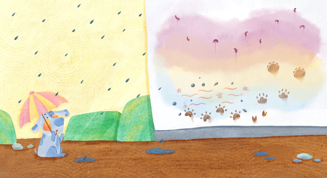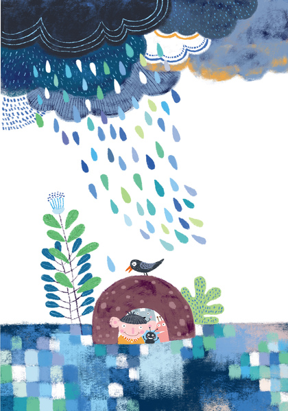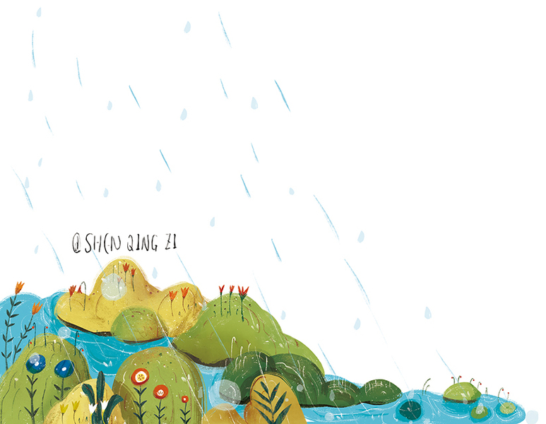 儿童插画《下雨啦》