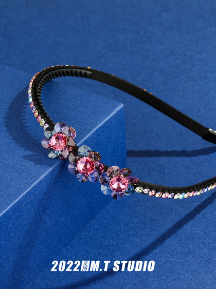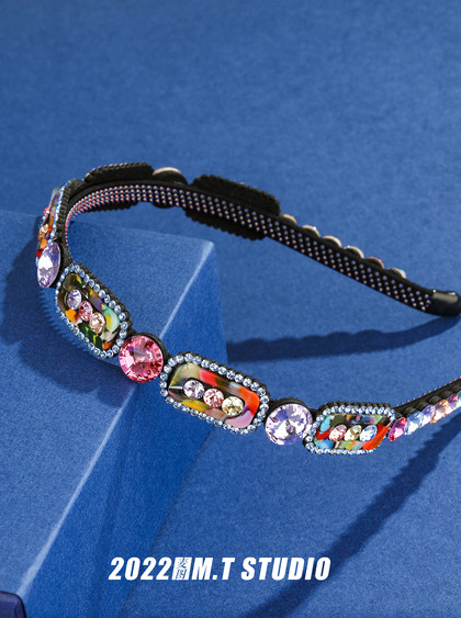 产品摄影 饰品发箍复古蓝底平铺静物拍摄作品展示