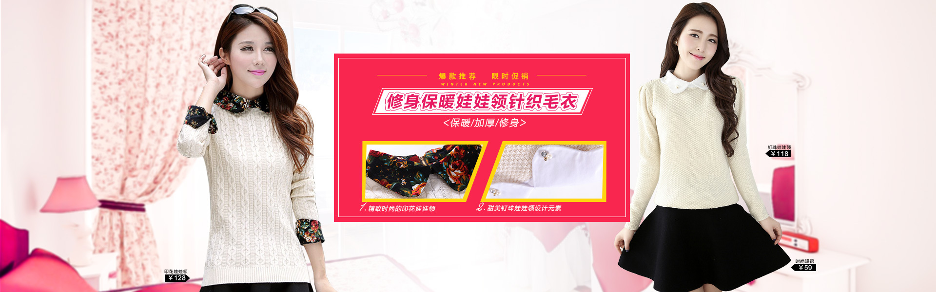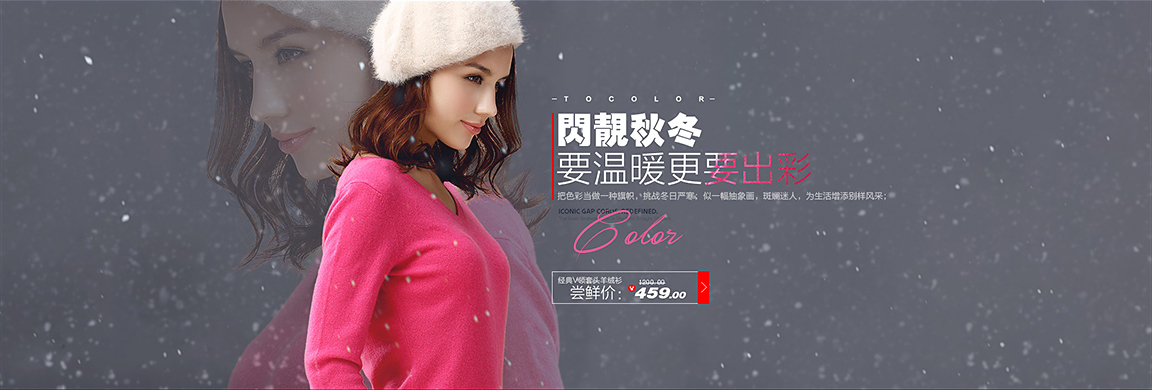 天猫女装冬装线下专柜全新上线-首屏广告banner广告图-门店服务页面-潮流搭配页面