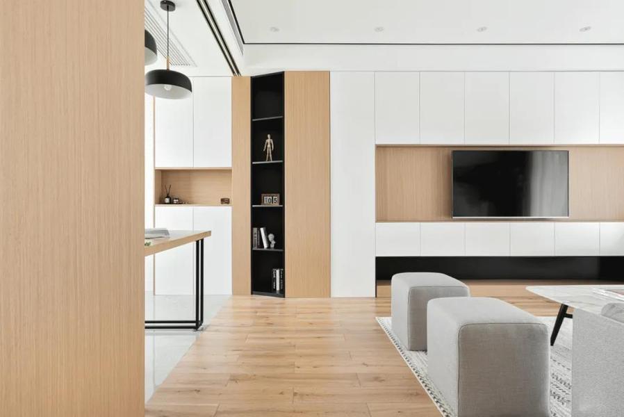 整体以奶咖色、米色、白色为主,呈现出的空间通透干净
