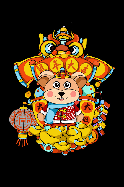 鼠年新春国潮插画