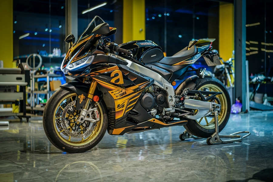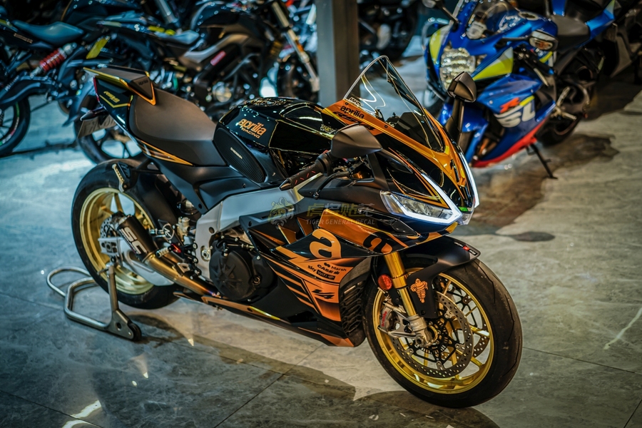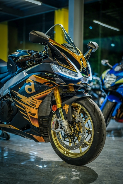 阿普利亚22款RSV4改黑金拉花涂装-3M彩绘改色膜