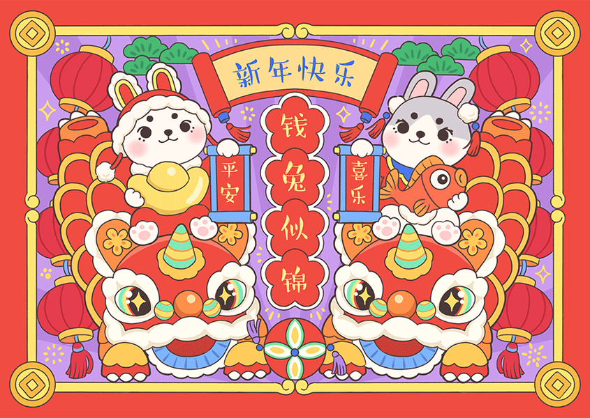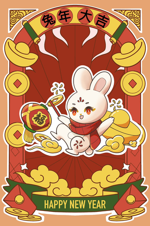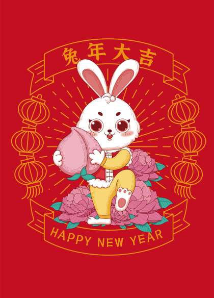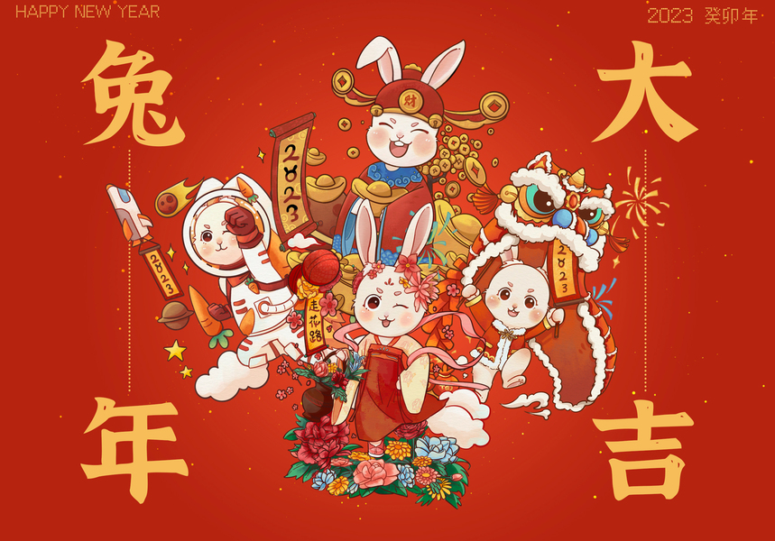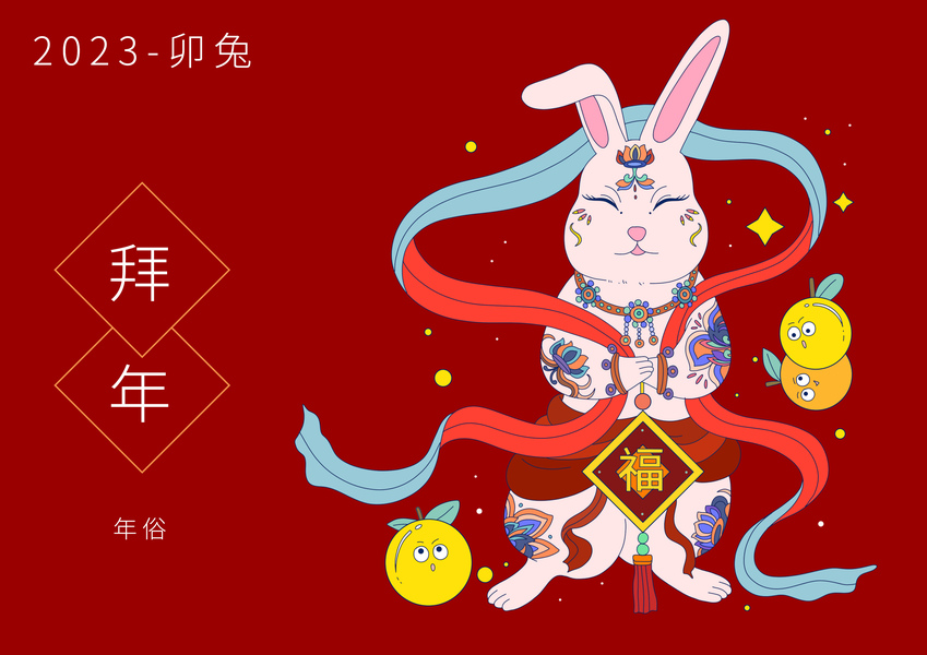 2023福兔贺新春 兔年插画 兔年新春主题插画