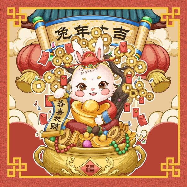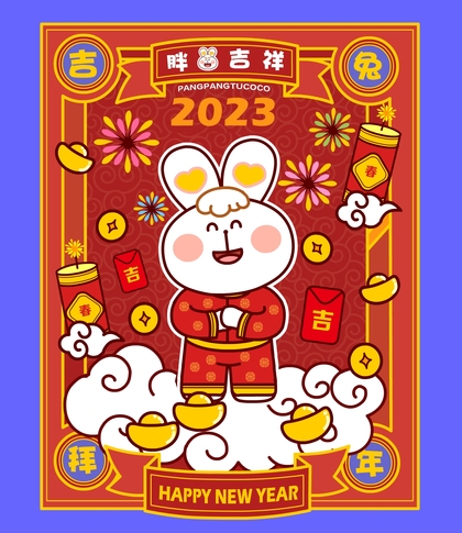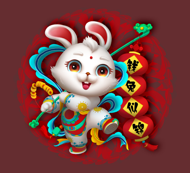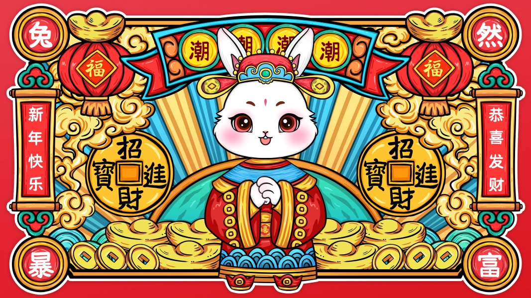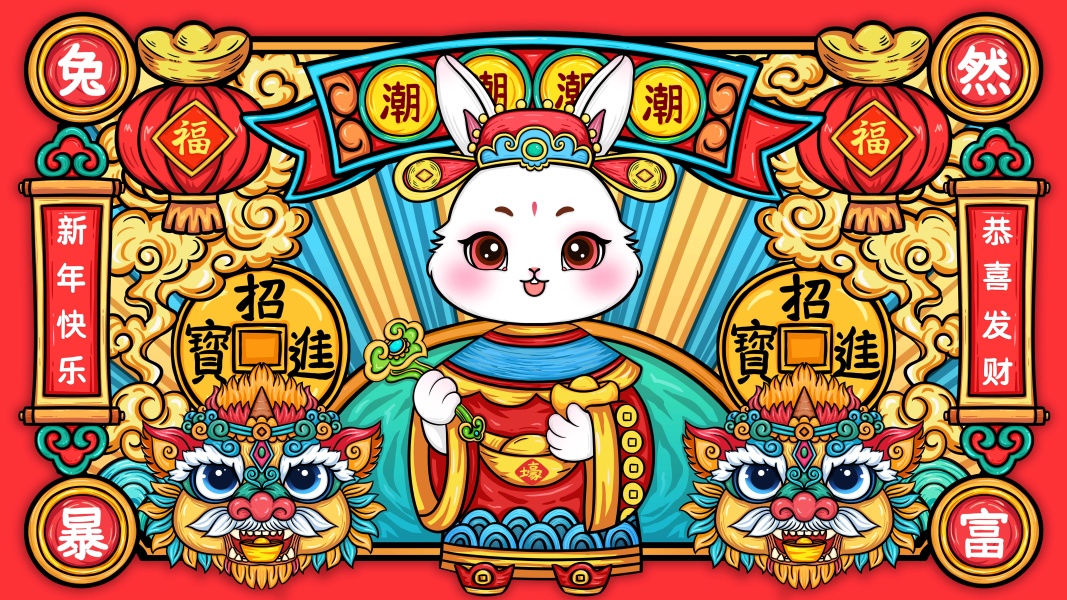 《福兔迎春辞旧岁》兔年生肖IP主题国风系列插画