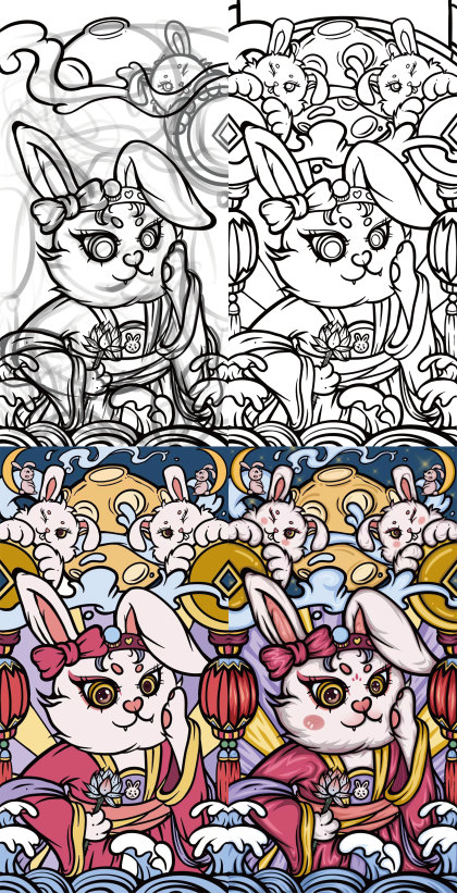 国潮插画 | 第一次尝试国潮插画🐰