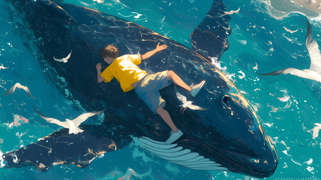#AI创作实验室#鲸鱼,动漫风,宏伟,机械,艺术,飞鸟
