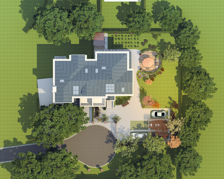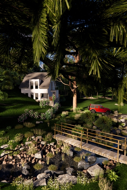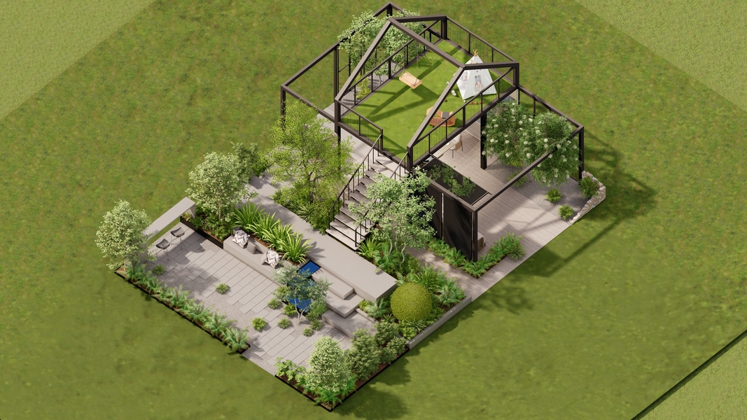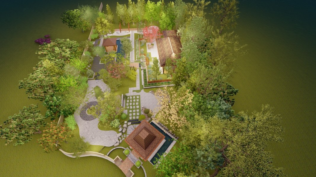 日式枯山水别墅庭院设计,楼顶花园 设计师:焦学杰