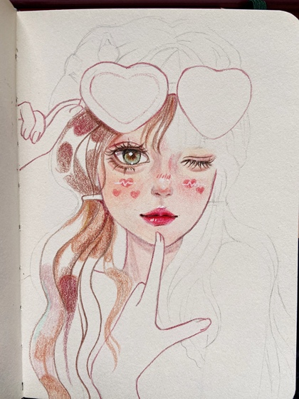 森系少女水彩插画水彩步骤水彩教程卡通插画头像手绘