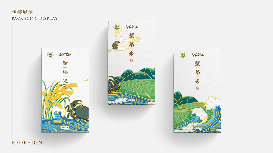 蟹田大米手绘包装设计|大米包装