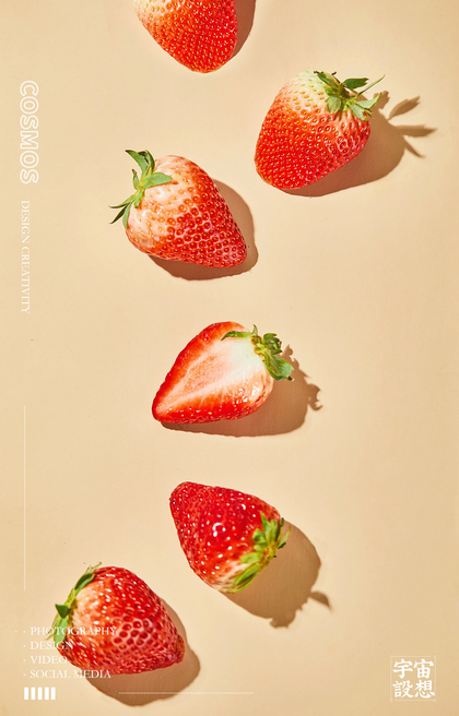 水果摄影 草莓拍摄 新鲜草莓 极简卡纸拍摄
