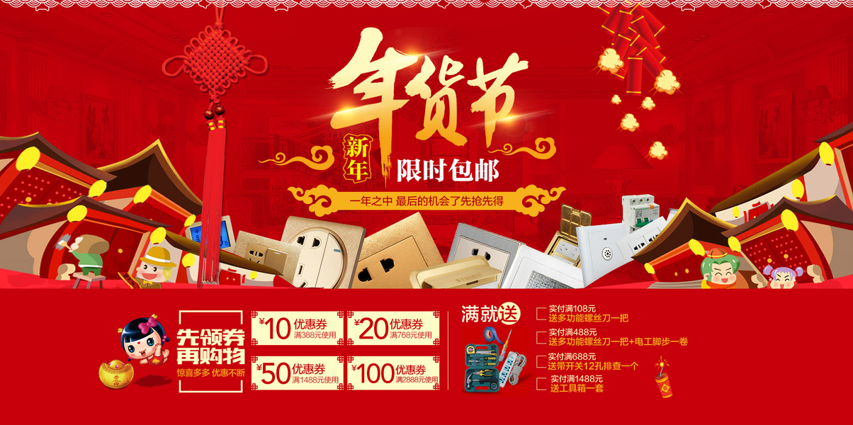 2016年货节新年 元旦狂欢节 春节店铺装修海报设计电气楼道感应详情页设计开关节能灯二线声声控开关