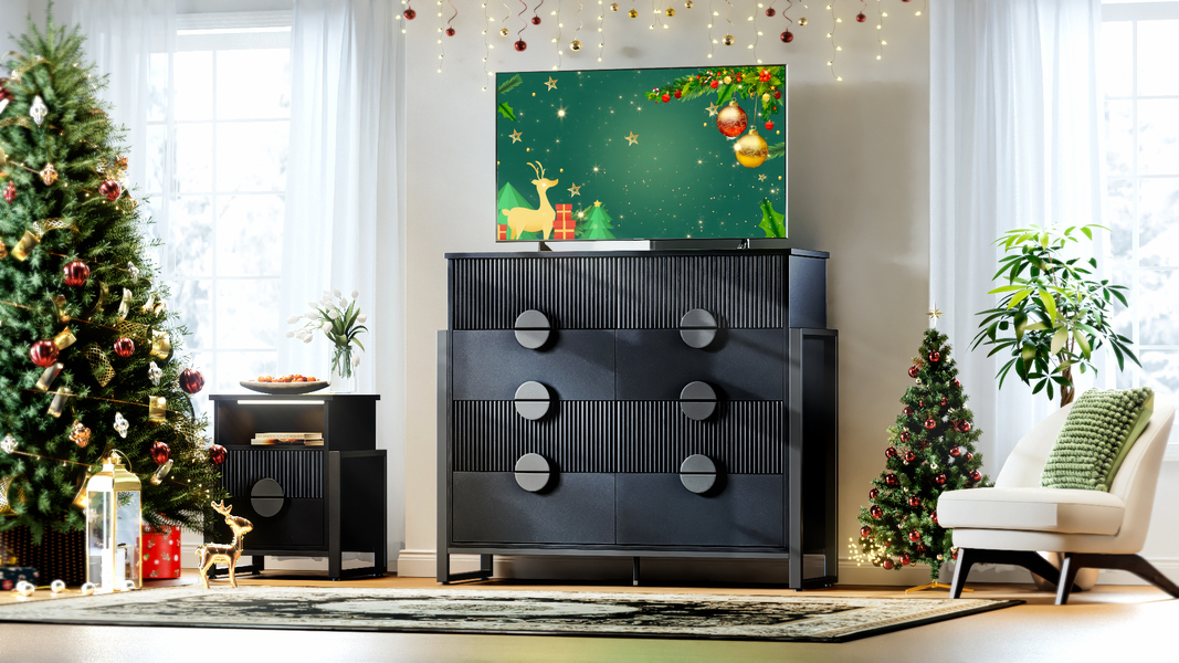为圣诞节制作的高八抽柜三维渲染视频,经典红绿配色