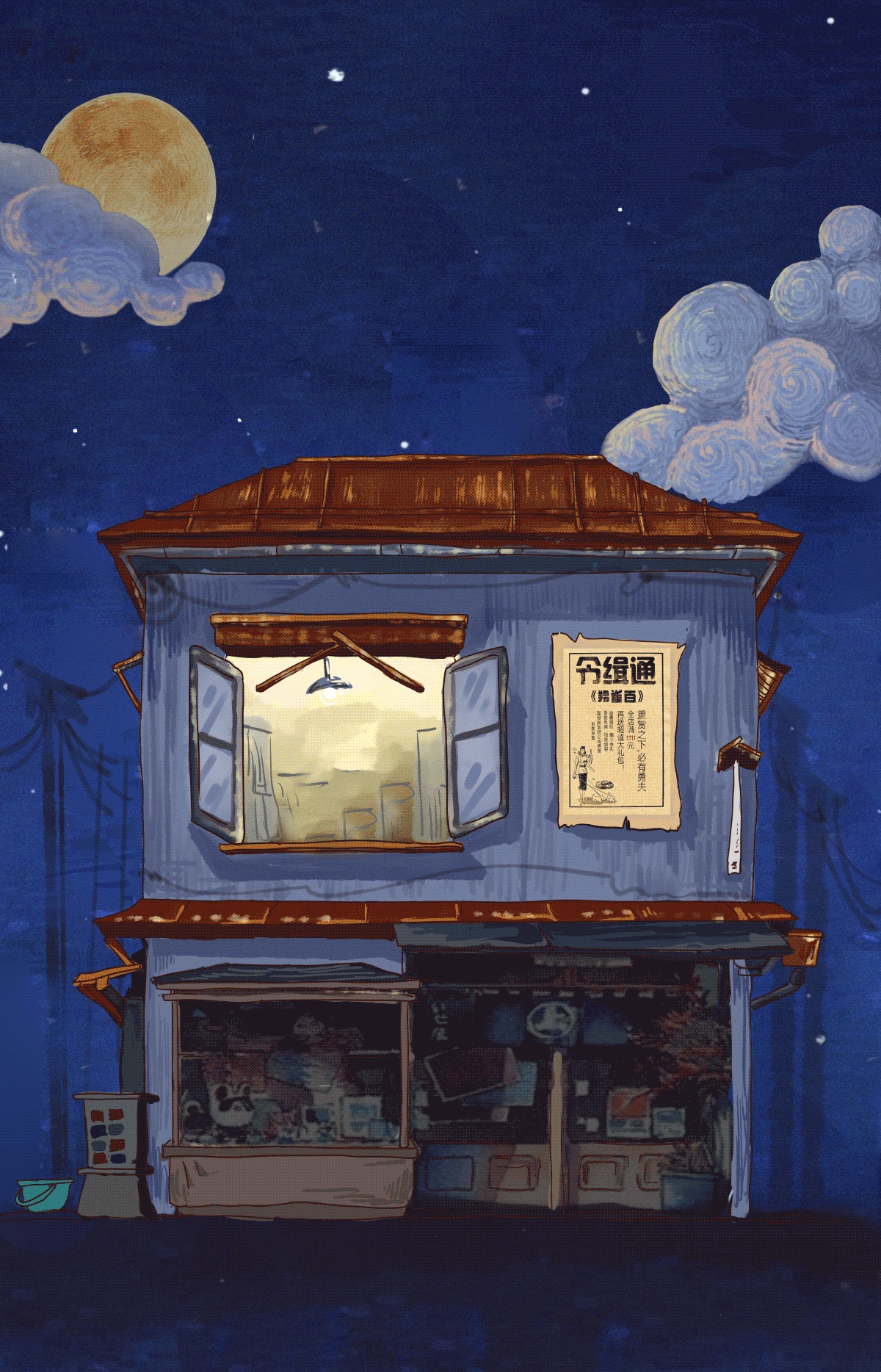 插画 月半