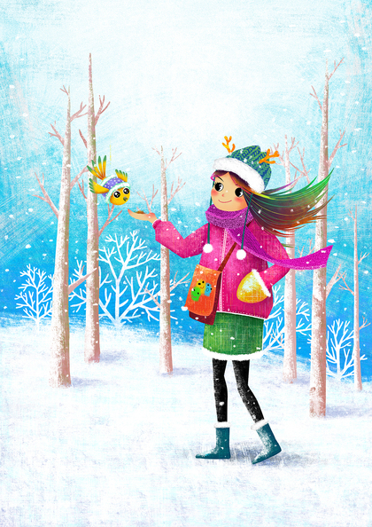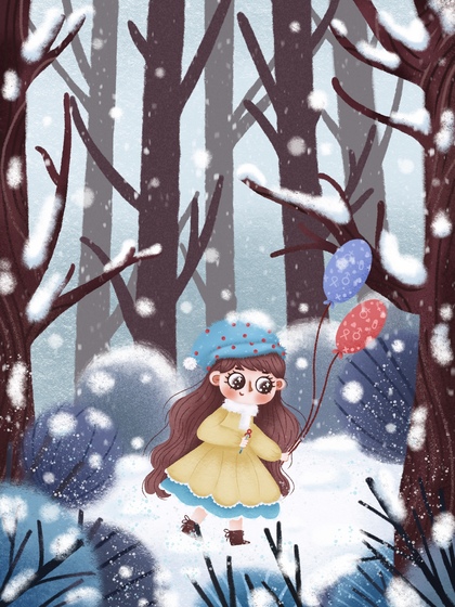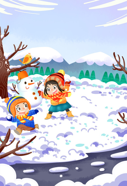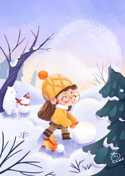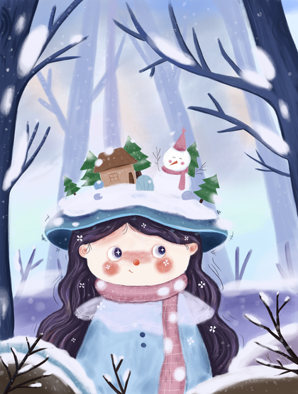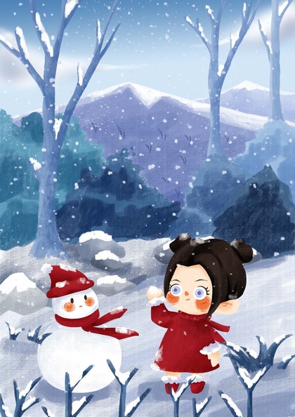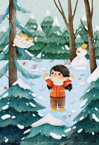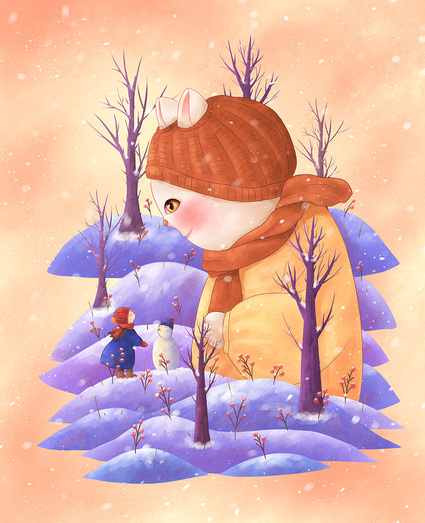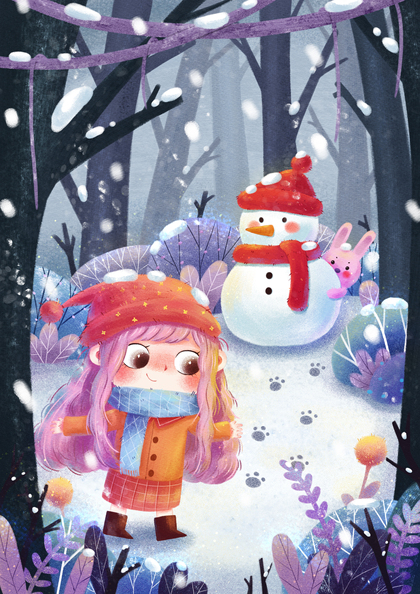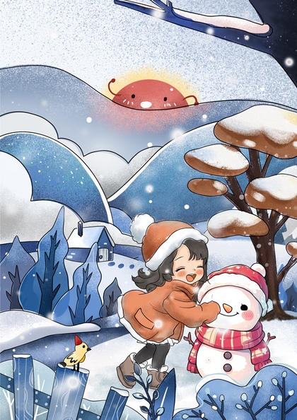 儿童插画《童趣》4,小雪人
