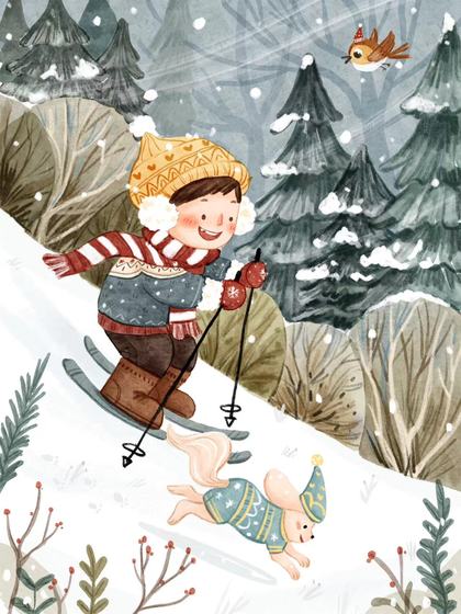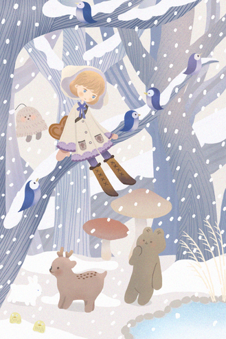 冬日森林中的小男孩(临摹)