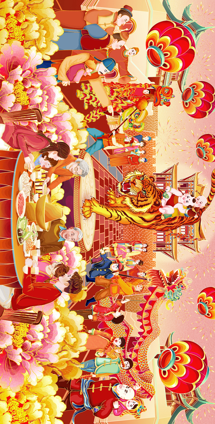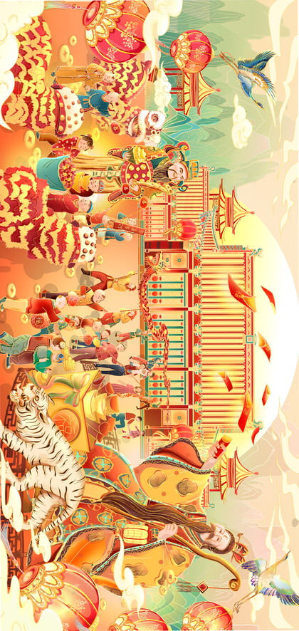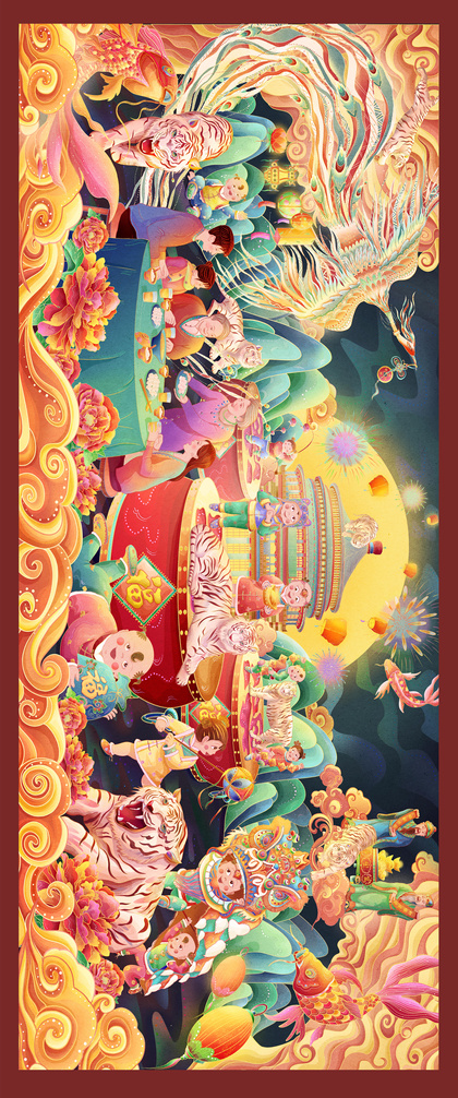 国潮插画~2022虎年福娃新春贺图长卷