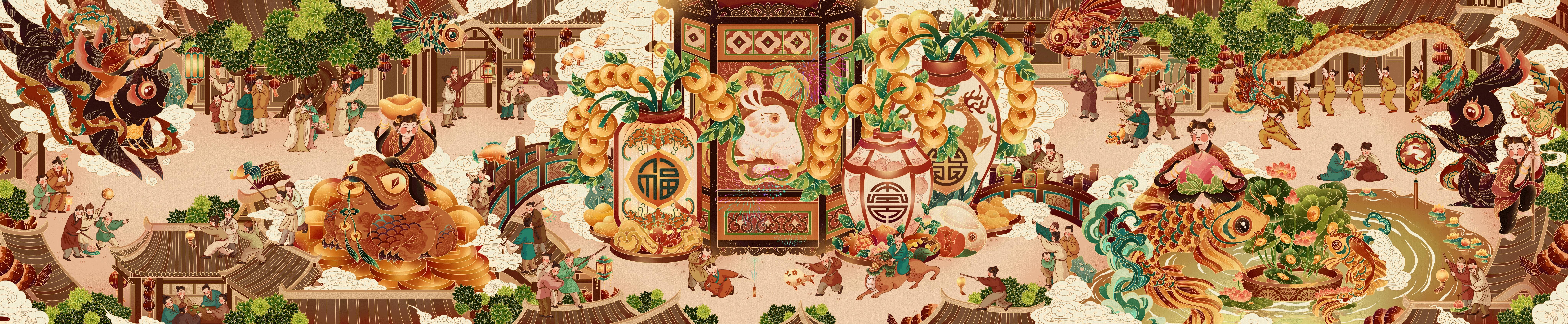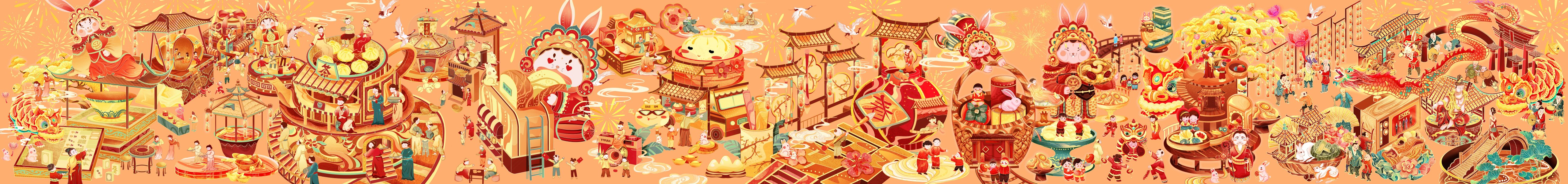 【吉祥如意迎新春—2023春节系列贺图.插画长卷】