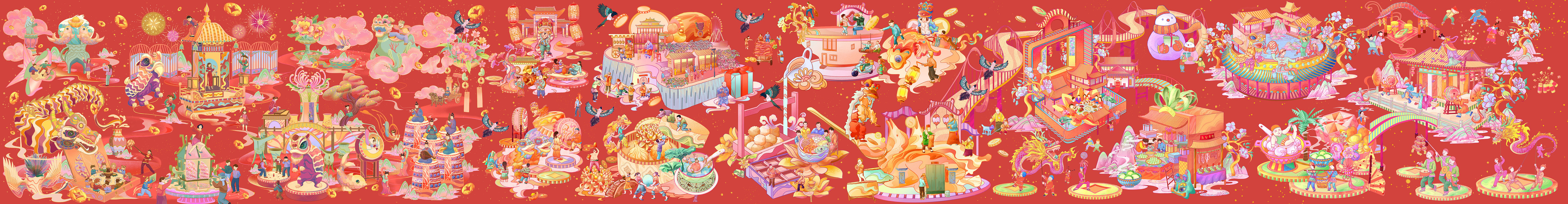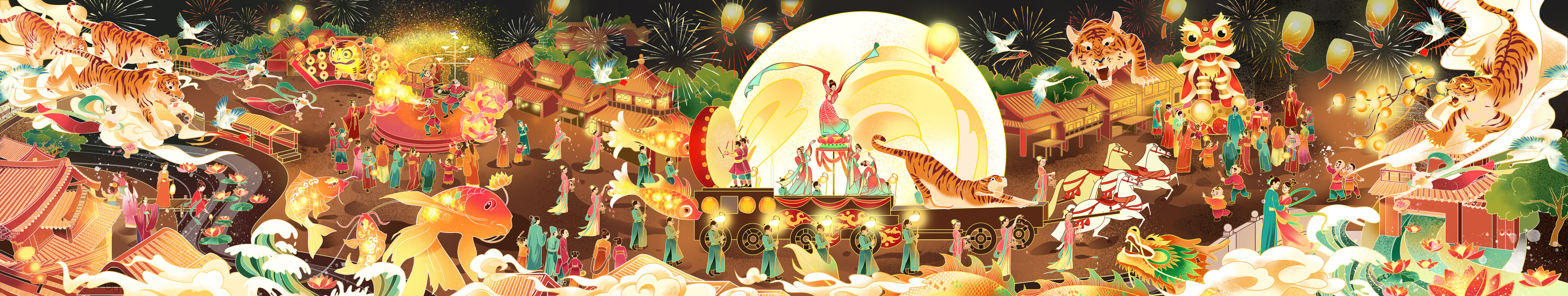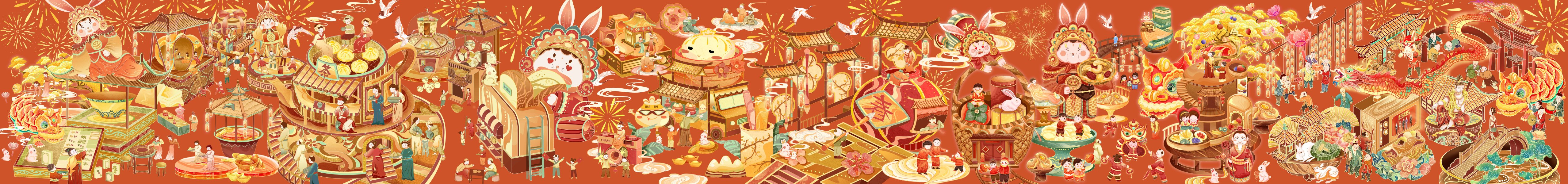 灯楼暖玉兔,火树耀金蟾 | 2023兔年春节插画长卷