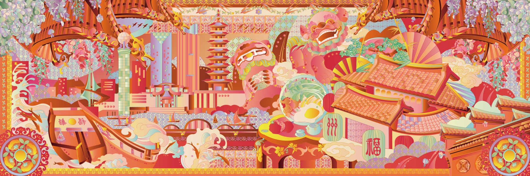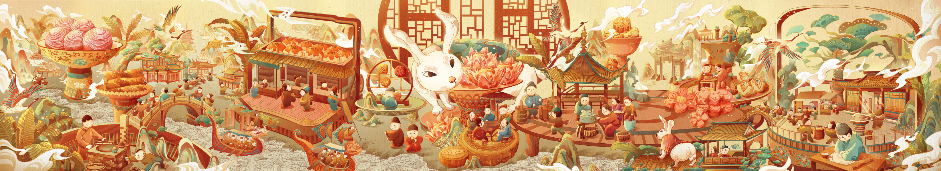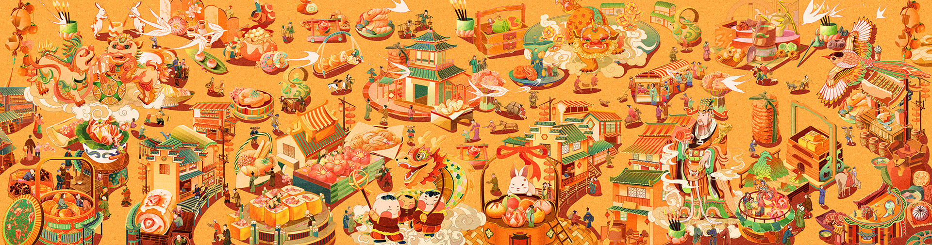 灯楼暖玉兔,火树耀金蟾 | 2023兔年春节插画长卷