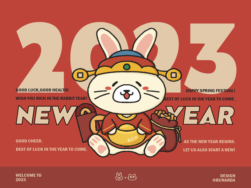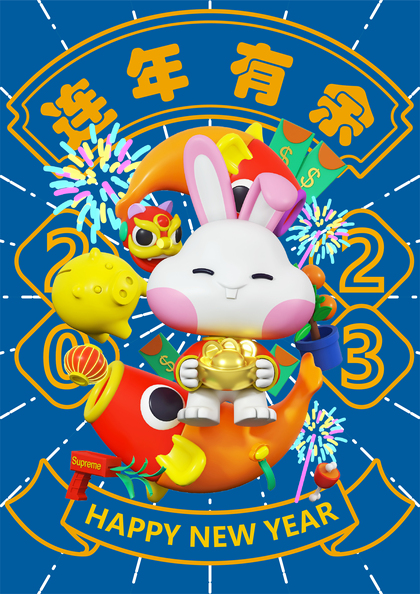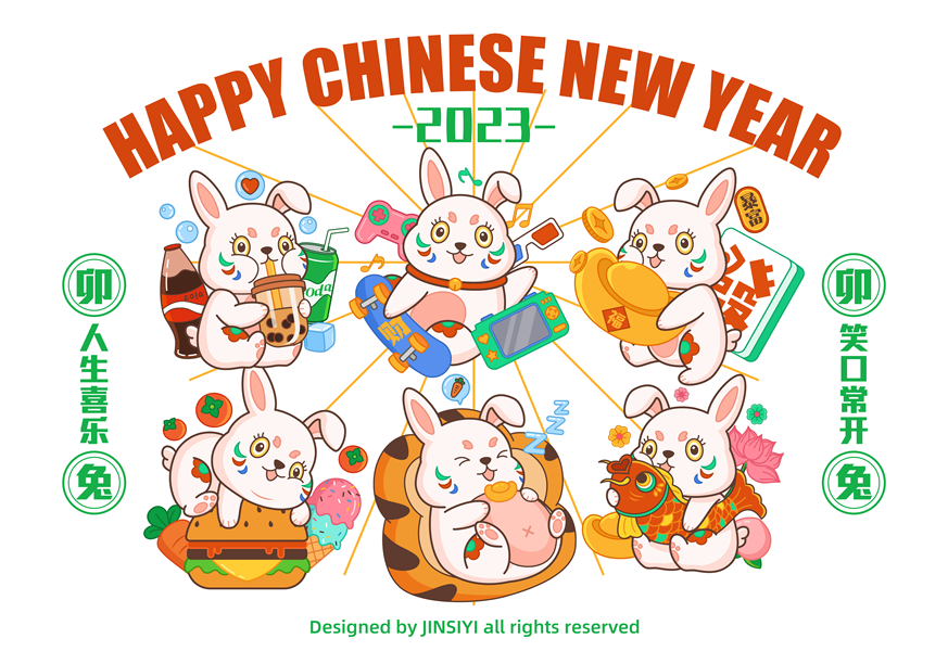 2023福兔贺新春 兔年插画 兔年新春主题插画