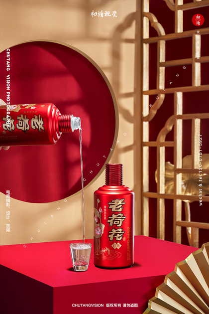 红荷花酒白酒拍摄新中式创意摄影◆初塘视觉