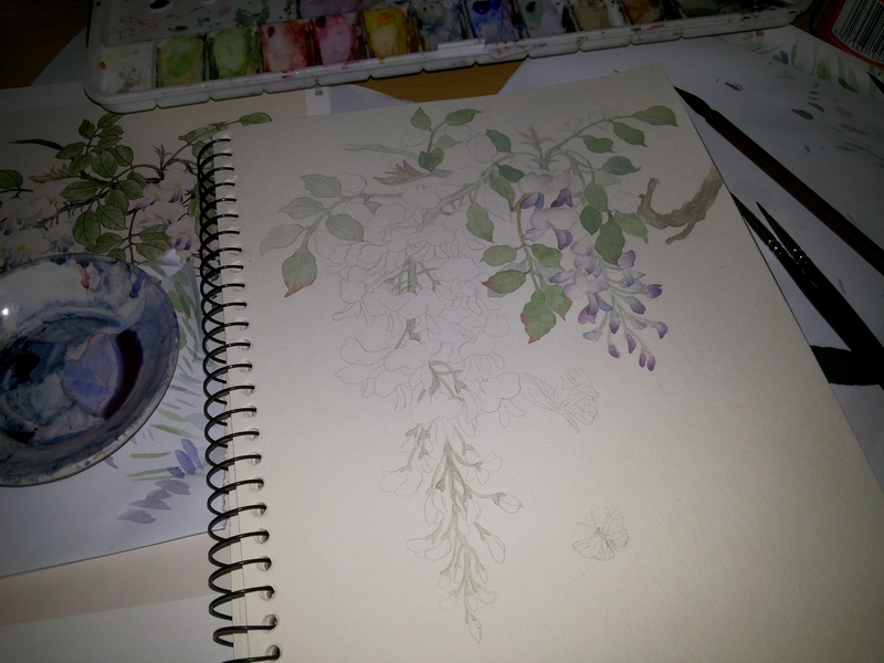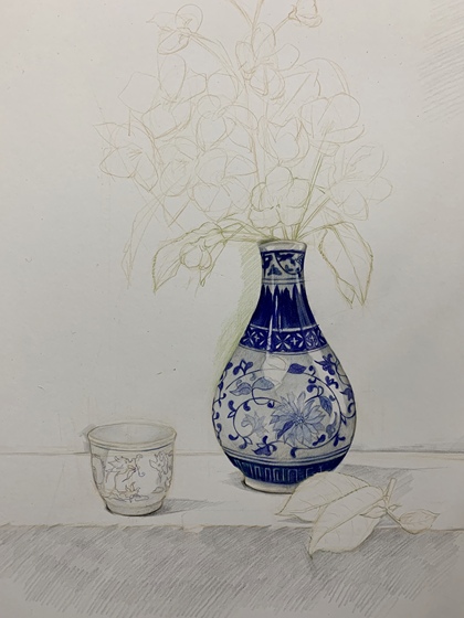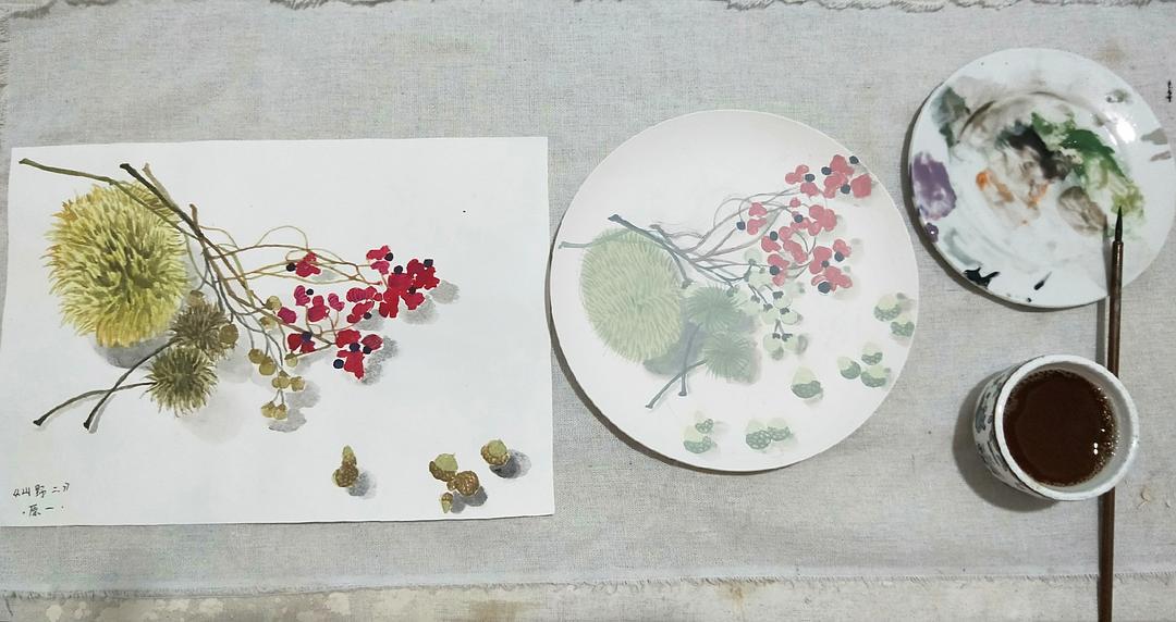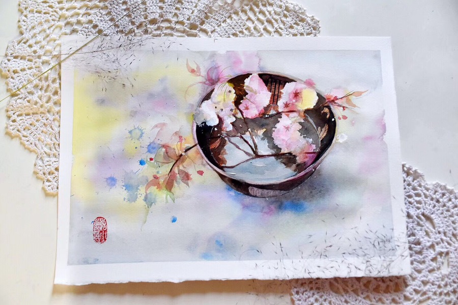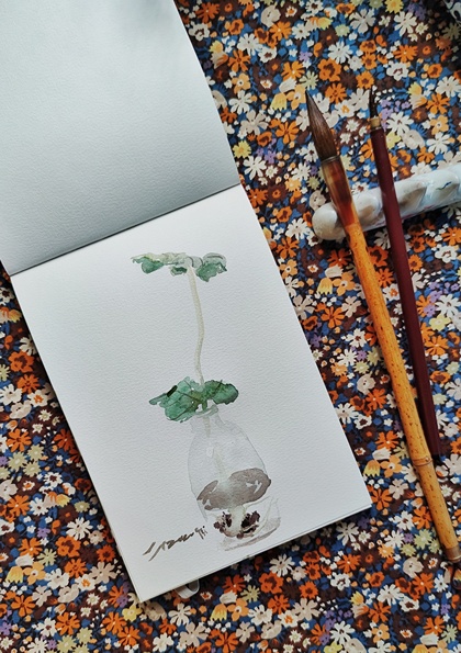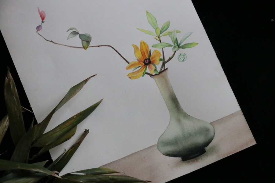 水彩练习——中式插花2