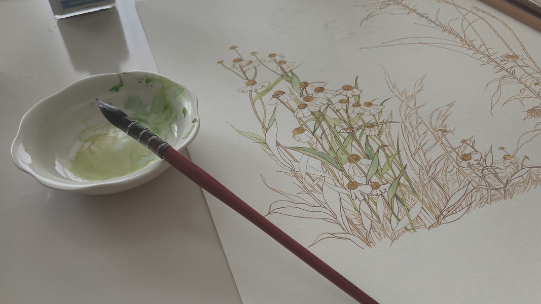 𝒔𝒑𝒓𝒊𝒏𝒈🪞钢笔淡彩上色过程