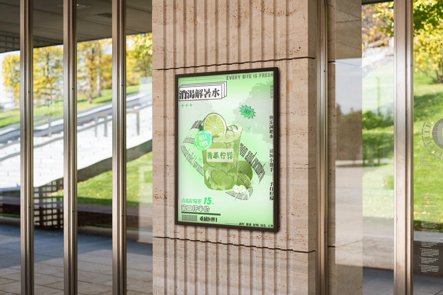 《青瓜柠檬水》夏日奶茶店酷酷风海报