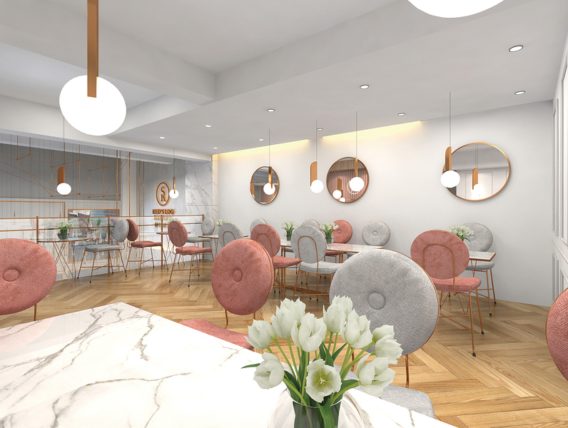 蓝色一页BP@红鞋烘焙,网红风烘焙店铺室内设计