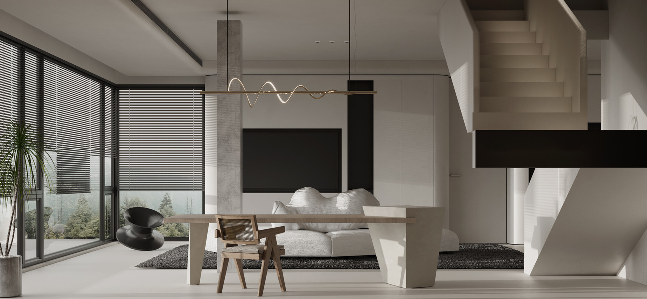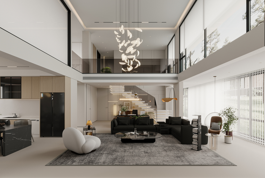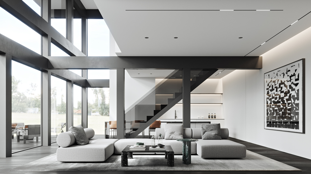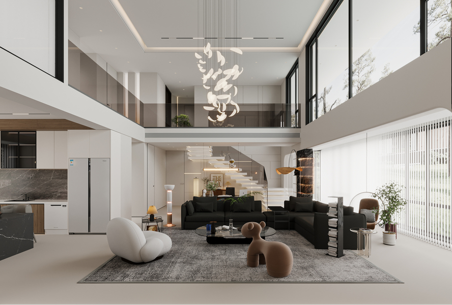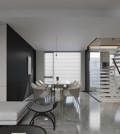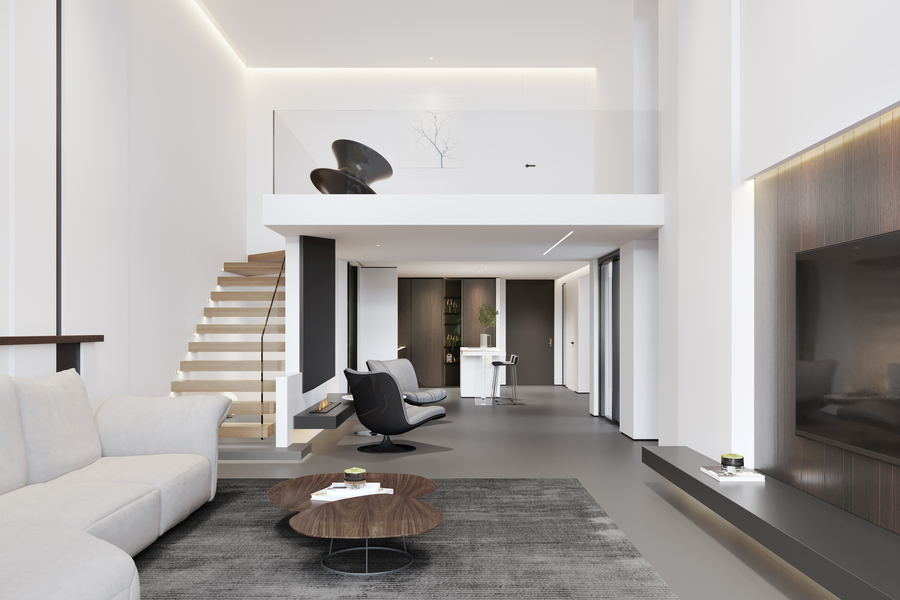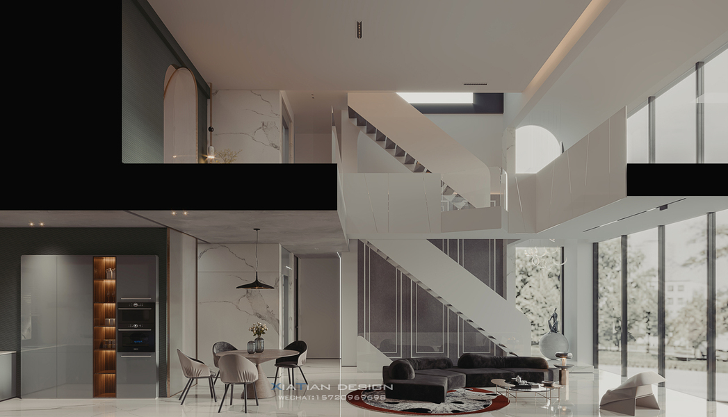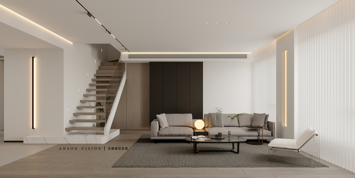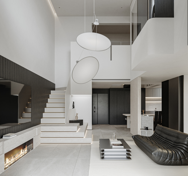 深圳如愿空间设计:极简黑白灰复式,最喜欢就是客厅