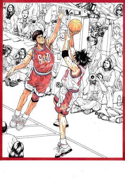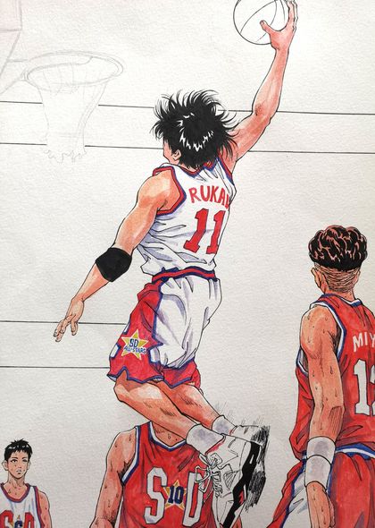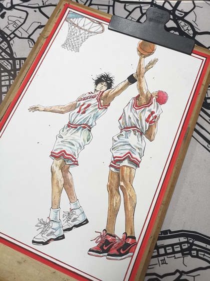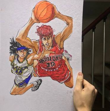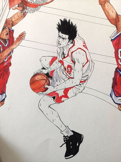彩铅手绘 明信片 灌篮高手 湘北五人众 (第一次上传)
