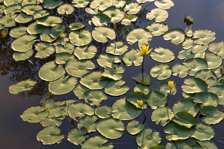 阳光洒在荷花池
