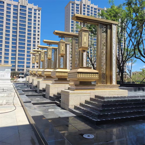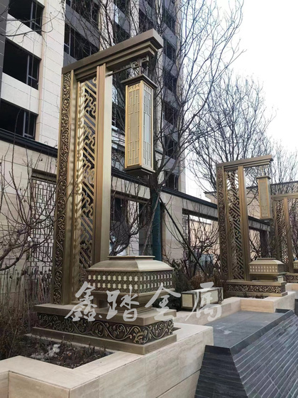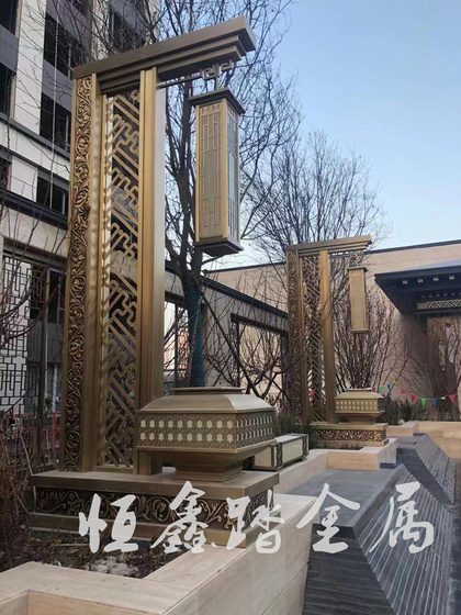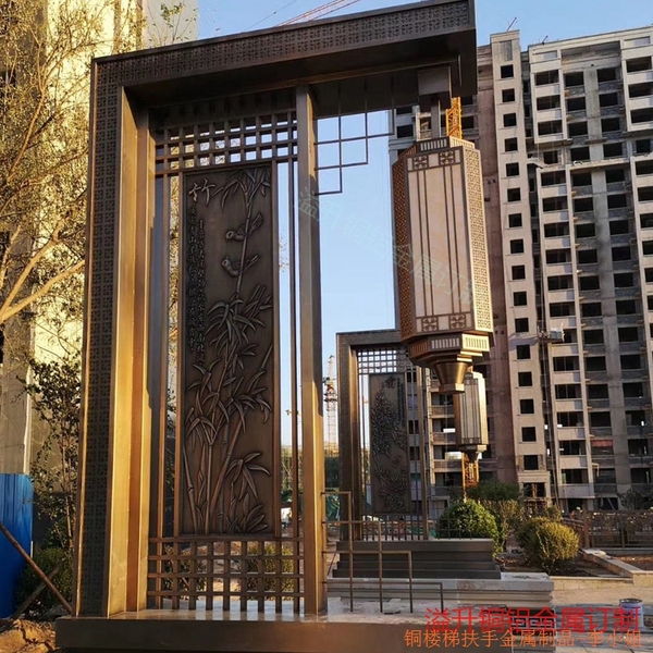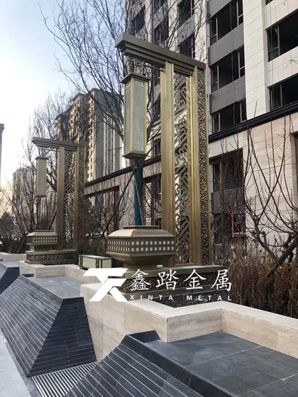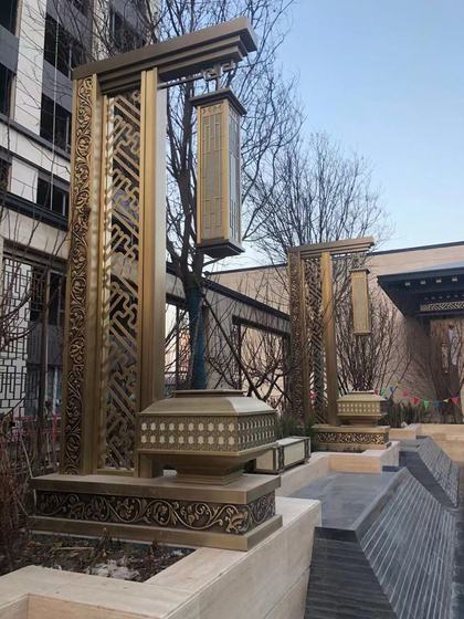 海南地产新中式仿古铜不锈钢金属整装装饰案例凸出效果