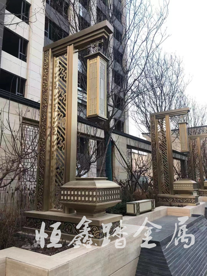 北方售楼部不锈钢金属屋檐整装、仿古铜不锈钢镀铜包柱