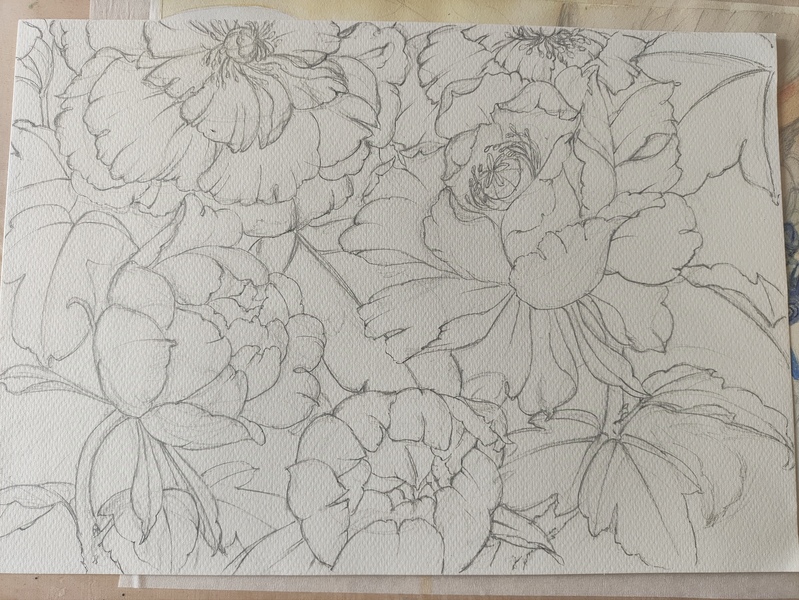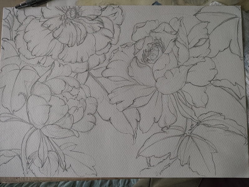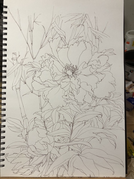 用四天时间,画一幅牡丹花