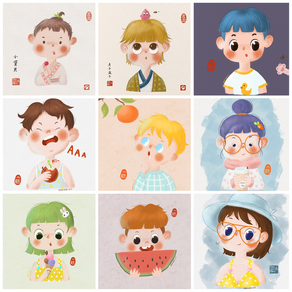 卡皮巴拉水豚萌萌IP卡通形象插画水果系列