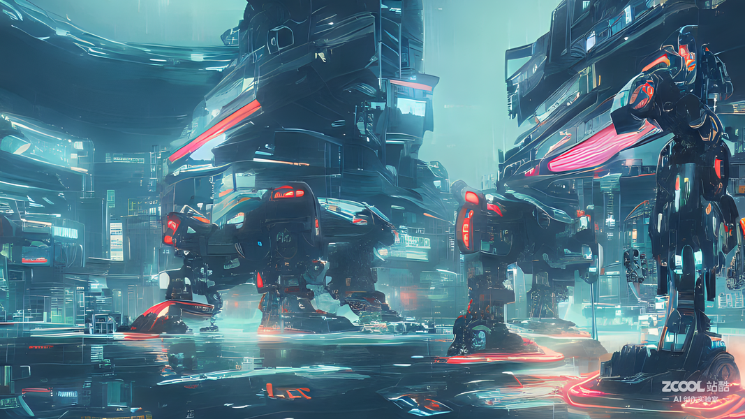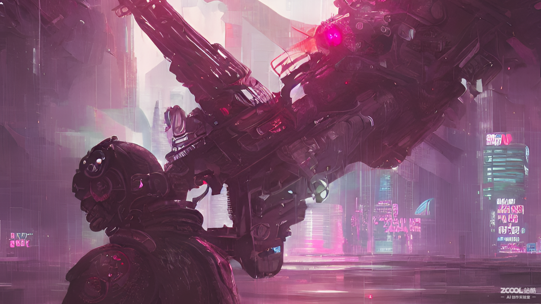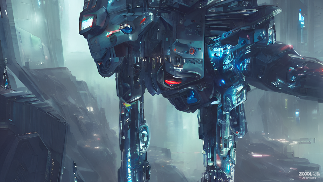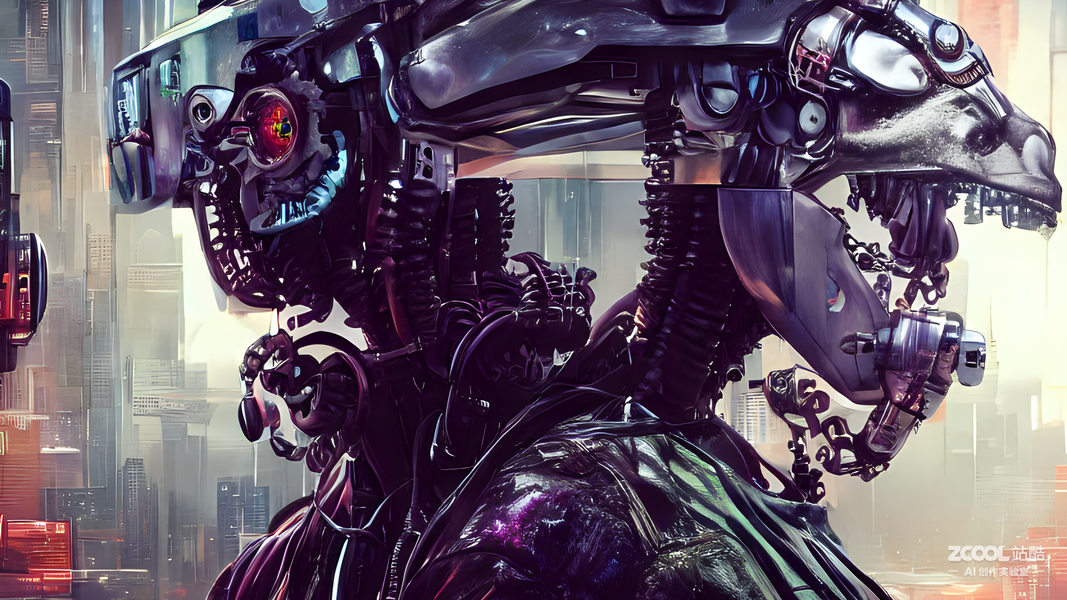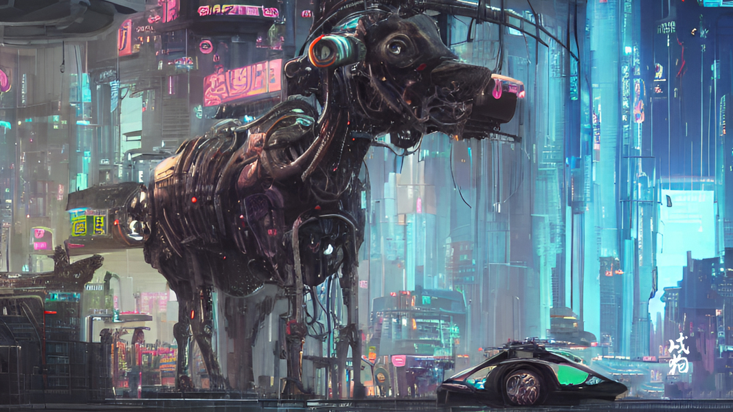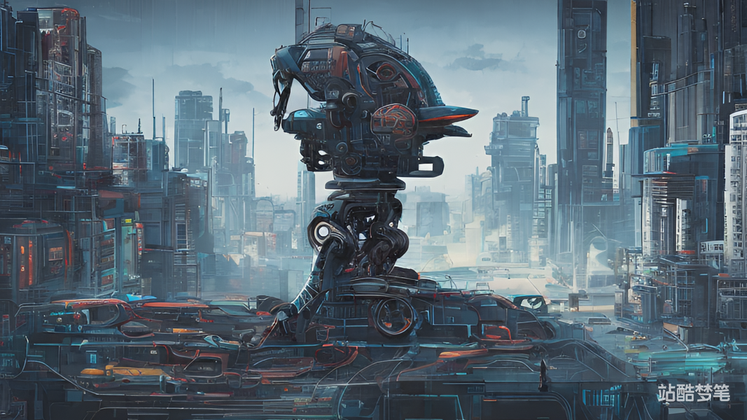 #站酷梦笔#未来城市,机械狗,赛博朋克风格