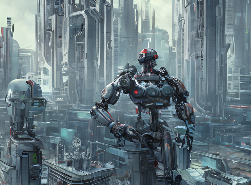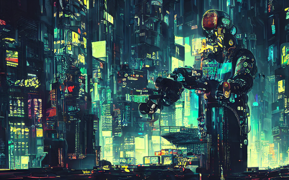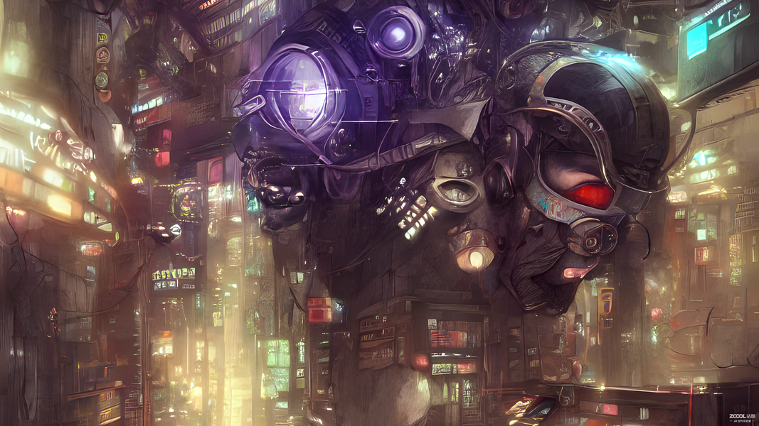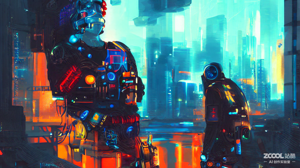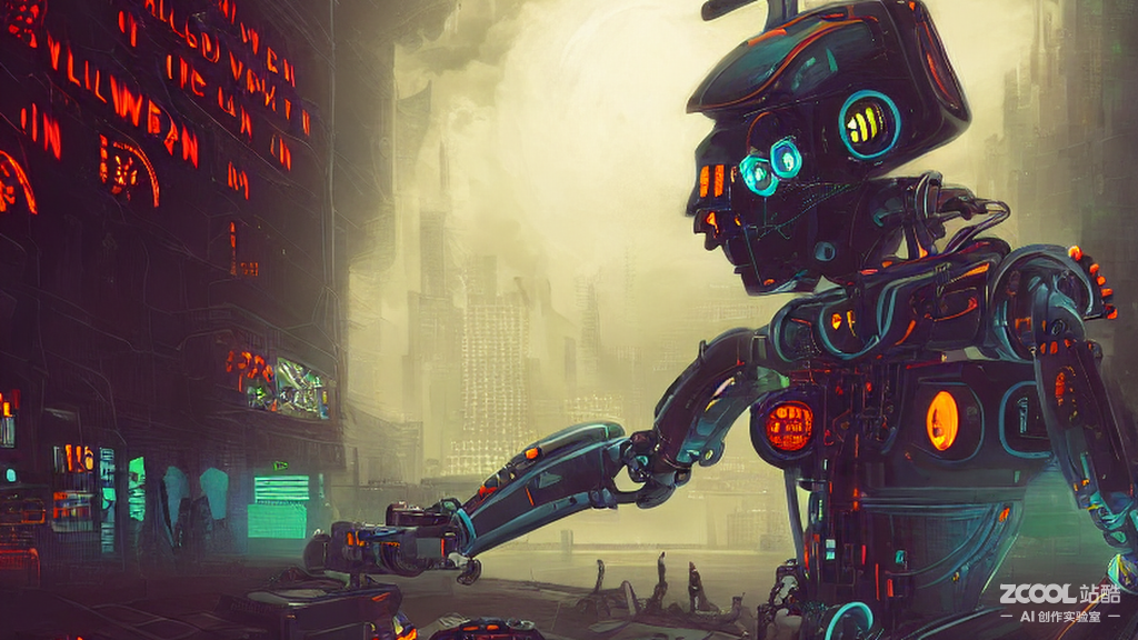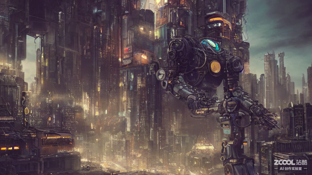 #站酷梦笔#未来城市,机械狗,赛博朋克风格